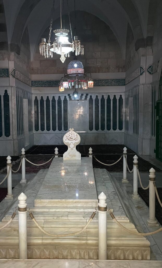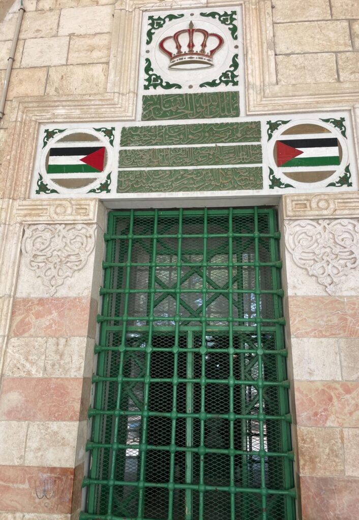 مسجد اقصیٰ کے کمپاؤنڈ میں مغرب کی جانب بنی فصیل کے اندر کئی مدرسے اور عمارتیں قائم تھیں۔ انھی مدرسوں میں سے ایک مدرسہ الخاتونیہ ہے جو باب القطانین [english] Cotton Merchants’ Gate [/english] کے بائیں جانب قائم ہے۔ اس مدرسے کے ایک کمرے میں شریف مکہ حسین بن علی کی قبر ہے، جبکہ دوسرے کمرے میں مولانا محمد علی جوہر دفن ہیں۔ میں مولانا کی قبر پر فاتحہ پڑھنے کے بعد دونوں ہاتھ اٹھائے اپنی سوچوں میں مگن گمُ سم سا کھڑا تھا کہ حمزہ کی آواز سنائی دی. وہ پہلو کے کمرے کی کھلی کھڑکی کے سامنے کھڑا بےتابی سے مجھے بلا رہا تھا ۔ میں نے ایک بار پھر فاتحہ پڑھی اور اٹھے ہوئے دونوں ہاتھ اپنے منہ پر پھیرنے کے بعد اس طرف بڑھ گیا۔ اس کمرے کی کھلی کھڑکی کے اوپر اردن کا شاہی نشان بنا تھا۔ اندر نگاہ ڈالی تو اس کمرے کی شان ہی نرالی تھی۔ اس کی سجاوٹ اور آن بان دیدنی تھی۔ سنگ مرمر کا فرش ، دیواروں پر بہت خوبصورت خطاطی میں آیت قرآنی کندہ تھیں۔ چھت پر بھی بہت دلکش نقش ونگار بنے تھے۔