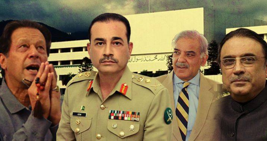 یہ تمام گفتگو اس امر کی طرف اشارہ ہے کہ فوج کی سیاست میں مداخلت سے متعلق اکثر بیانیہ یا تو حقائق سے ہٹ کر ہوتا ہے یا سیاسی مفادات کے لیے گھڑا جاتا ہے۔ بلاشبہ ماضی میں فوجی حکومتیں رہی ہیں، جنرل ایوب سے لے کر جنرل مشرف تک کی تاریخ موجود ہے۔جنرل مشرف کی رخصتی کے بعد جب پہلی بار سیاسی قیادت میثیاق جمہوریت کے تحت آگے بڑھنے لگی تو میاں نوازشریف کالا کوٹ پہن کر کورٹ میں پہنچ گے۔ممیو گیٹ سکینڈل میں نواز لیگ کا کردار قابل شرم رہا۔سید یوسف رضا گیلانی کو نااہل کروانے والے میاں نوازشریف خود بھی 5سال پورے نہ کرسکے اور نااہل ہی ہوئے۔پھر ووٹ کوعزت دو کا بیانیہ لیکن تب عمران خان نوازشریف والا کردار اپنا چکے تھے۔ تھرڈ آپشن سامنے آئی۔اکثریت نہ ہونے کے باوجود عمران خان اقتدار پر براجمان ہوئے۔اس وقت پی ٹی آئی کو فوج کے کردار پر اعتراض نہ تھا۔ معاملہ بہت سادہ ہے سیاسی قیادت عوامی طاقت کی بجائے شارٹ کٹ پر یقین کامل کیساتھ آگے بڑھتی رہی۔