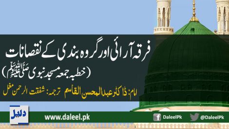 فضیلۃ الشیخ ڈاکٹر جسٹس عبد المحسن بن محمد القاسم حفظہ اللہ نے11-صفر -1438 کا خطبہ جمعہ مسجد نبوی میں ’’فرقہ آرائی اور گروہ بندی کے نقصانات‘‘ کے عنوان...