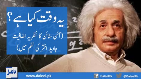 (آئن سٹائن کا نظریہ اضافیت، جاوید اختر کی نظم میں) یہ وقت کیا ہے؟ ۔۔۔ کبھی کبھی میں یہ سوچتا ہوں کہ چلتی گاڑی سے پیڑ دیکھو تو ایسا لگتا ہے ، دوسری...